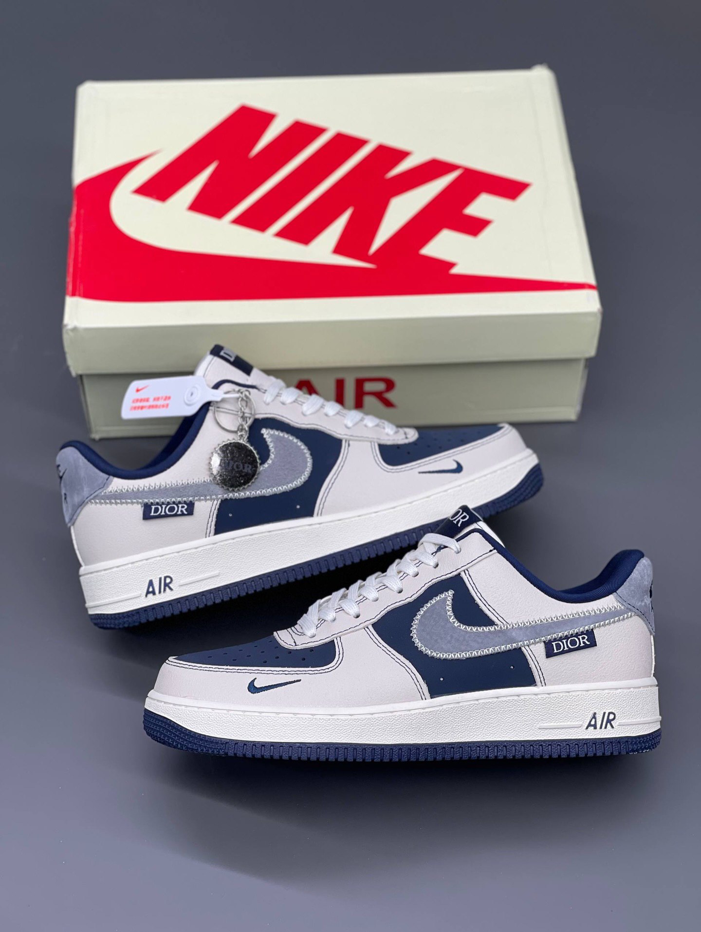 ایر فورس دیور نسخهای بسیار خاص از کفش کلاسیک Nike Air Force 1 است که با جزئیات و سبک لوکس برند Dior ادغام شده است. این مدل معمولاً با رنگهای سفید و خاکستری ملایم و جزئیات حکشده یا پارچهی Dior شناخته میشود که حالتی لوکس و متفاوت نسبت به نسخههای معمولی AF1 میدهد.